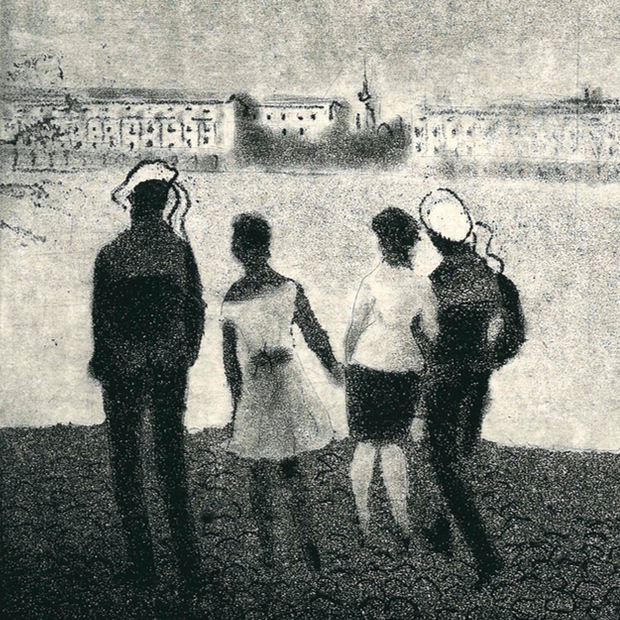 Выставка разместилась в трех залах. В первом можно увидеть графику 1960–2020-х годов: рисунки, офорты, акварели, пастели. Второй и третий посвящены живописи, в которую из графики перешли лейтмотивы театра, цирка, зеркал, пляжей, пейзажи Старицы и Ржевки, озера Долгого, а также женские образы, в том числе портреты жены художника Ларисы Громовой.