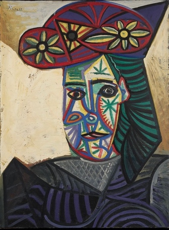 Пабло Пикассо. Бюст женщины в шляпе с цветами (Дора Маар). 1943. Холст, масло. Источник: drouot.comПортрет художницы и музы Пикассо Доры Маар кисти Пабло Пикассо, не выставлявшийся на публике более восьмидесяти лет, был продан 24 октября на торгах в Hôtel Drouot за €32 млн (при эстимейте €8 млн). Написанная в 1943 году, в период немецкой оккупации Парижа, картина «Бюст женщины в шляпе с цветами (Дора Маар)» до недавнего времени находилась в коллекции семьи, которая приобрела ее в 1944 году. Впервые работу представили публике в Hôtel Drouot перед аукционом. Ранее полотно было известно только по фотографии, сделанной Брассаем в студии художника в 1944 году и воспроизведенной в каталоге-резоне Кристиана Зервоса.