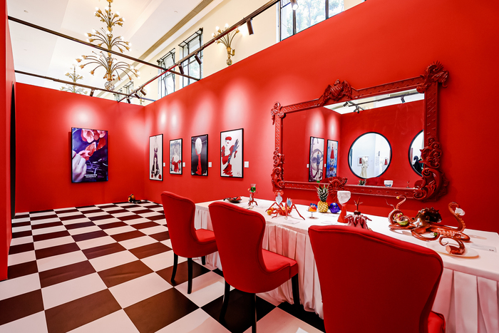 Марина Федорова. Ужин в красных тонах. 2025. Инсталляция на ярмарке ART021В этом году ярмарка современного искусства ART021 объединила 139 галерей и проектов из 22 стран и регионов. Среди премьер ярмарки — «Ужин в красных тонах» (Dinner in Red) художницы Марины Федоровой, сочетающий элементы тотальной инсталляции и иммерсивного театра.