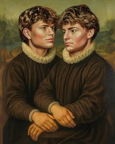 Картина, повешенная Реммери и Хавербеке в Лувре. Источник: социальные сетиБельгийские пранкеры Нил Реммери и Сенне Хавербеке пронесли в Лувр картину и повесили ее в зале с «Джокондой». Для обхода металлодетекторов они собрали раму работы из деталей Lego, а саму картину — шутливый портрет дуэта — принесли свернутой.