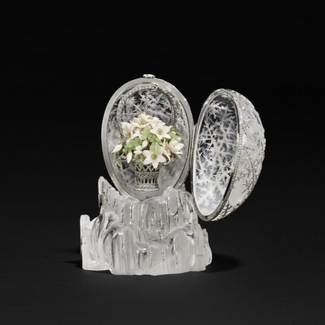 Альма Пиль (дизайн), Альберт Холмстрём (мастер). Зимнее яйцо. 1913, Дом Фаберже, Санкт-Петербург. Горный хрусталь, платина, бриллианты, кварц, дерево, золото, гранат, нефрит, резьба. Источник: christies.comНа лондонских торгах Christie’s установлен рекорд цены на яйцо Фаберже: «Зимнее яйцо» продано за £22,8 млн. В 1885–1916 годах императорская семья заказала у дома Фаберже пятьдесят яиц. Созданное в 1913 году «Зимнее яйцо» было пасхальным подарком Николая II его матери Марии Федоровне. Яйцо выполнено из горного хрусталя, платины и бриллиантов.