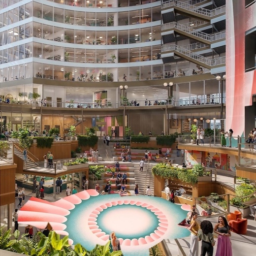 Джуди Чикаго. Эскиз оформления пола в Thompson Center. 2025. Источник: news.artnet.comАмериканская художница Джуди Чикаго объявила об отказе от оформления штаб-квартиры Google для здания Thompson Center в Чикаго после нескольких месяцев работы без подписанного контракта и оплаты. Проект был частью масштабной реновации Thompson Center, государственного здания, реконструируемого в новый главный офис Google. Компания предложила Джуди Чикаго оформить терраццовый пол пространства и 17-этажную стеклянную шахту лифта.