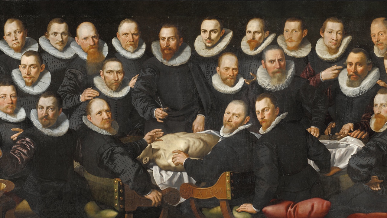 Если Парижский университет, где работал Везалий, был центром анатомии в XVI веке, то в XVII веке таким центром стал Лейденский университет в Нидерландах. В этом самом старом университете Нидерландов находился анатомический театр, вмещавший 200–300 человек. Правительство Нидерландов разрешило гильдии хирургов в Амстердаме проводить публичные вскрытия тел осужденных преступников раз в год. Гильдия была объединением людей одной профессии, возникшим в средневековой Европе. Врачи также образовывали гильдии для взаимопомощи.