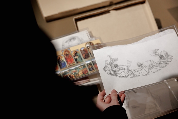 В этом году к десятилетию студии мы подготовили юбилейную выставку «Наши двери всегда закрыты», где тоже экспонировались архивные материалы, эскизы, документы и произведения, созданные художниками на их основе. Мы нашли новые формы презентации — например, использовали архивные кейсы из специальной бескислотной пленки, чтобы зрители могли изучать материалы без ассистирования хранителей.