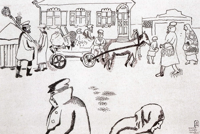 Марк Шагал. Улица в Витебске. 1914. Бумага, тушь, перо, графитный карандаш. Государственный Русский музей, Санкт-Петербург